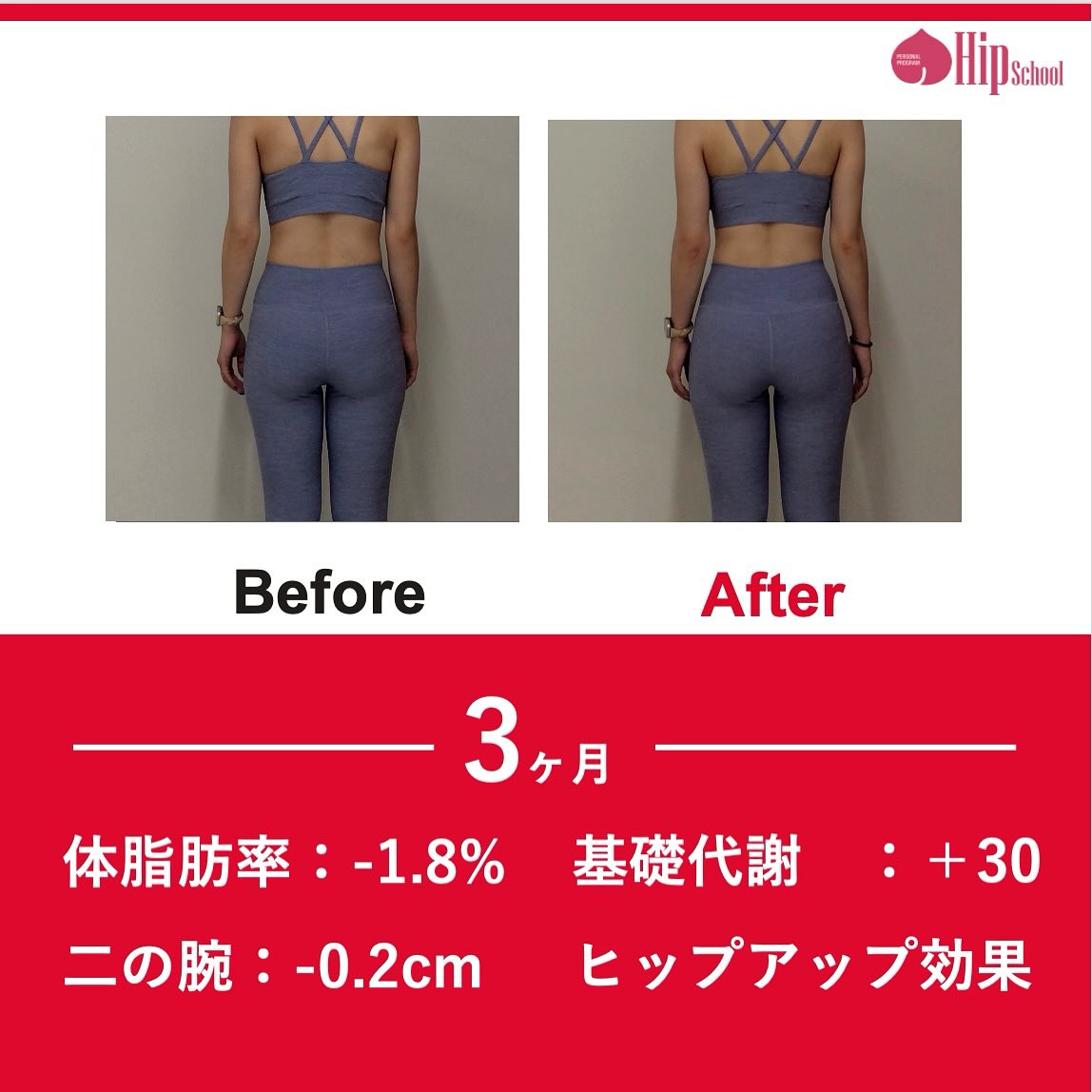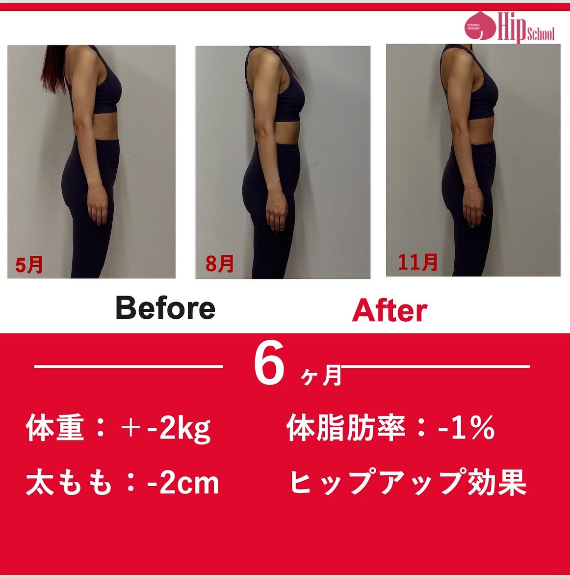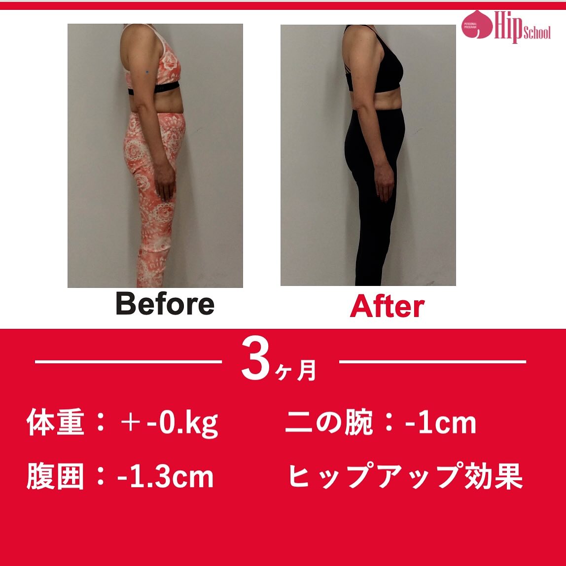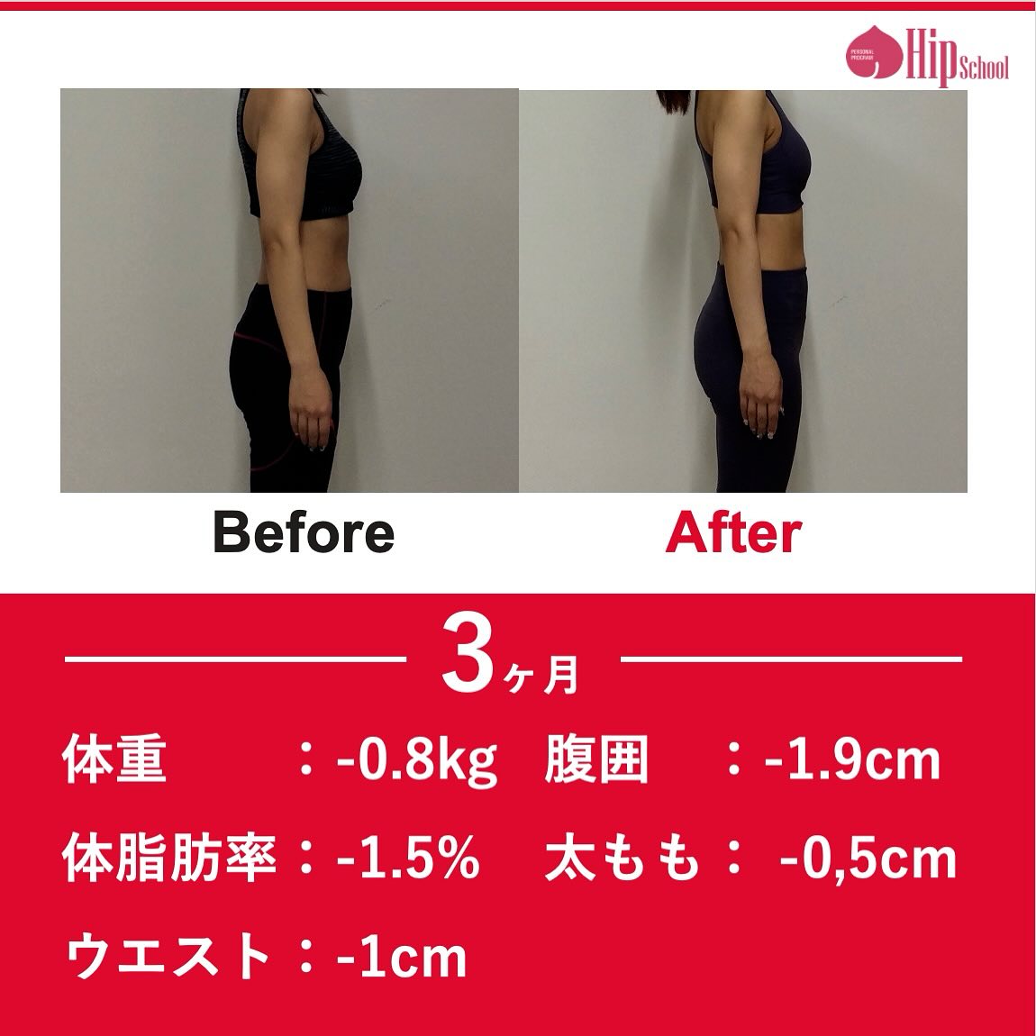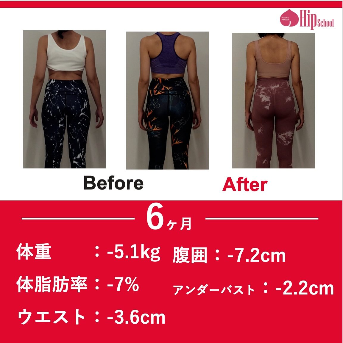 ヒップスクールに通われた生徒様のビフォーアフター。数値だけではない、姿勢やシルエットの劇的な変化をご覧ください。