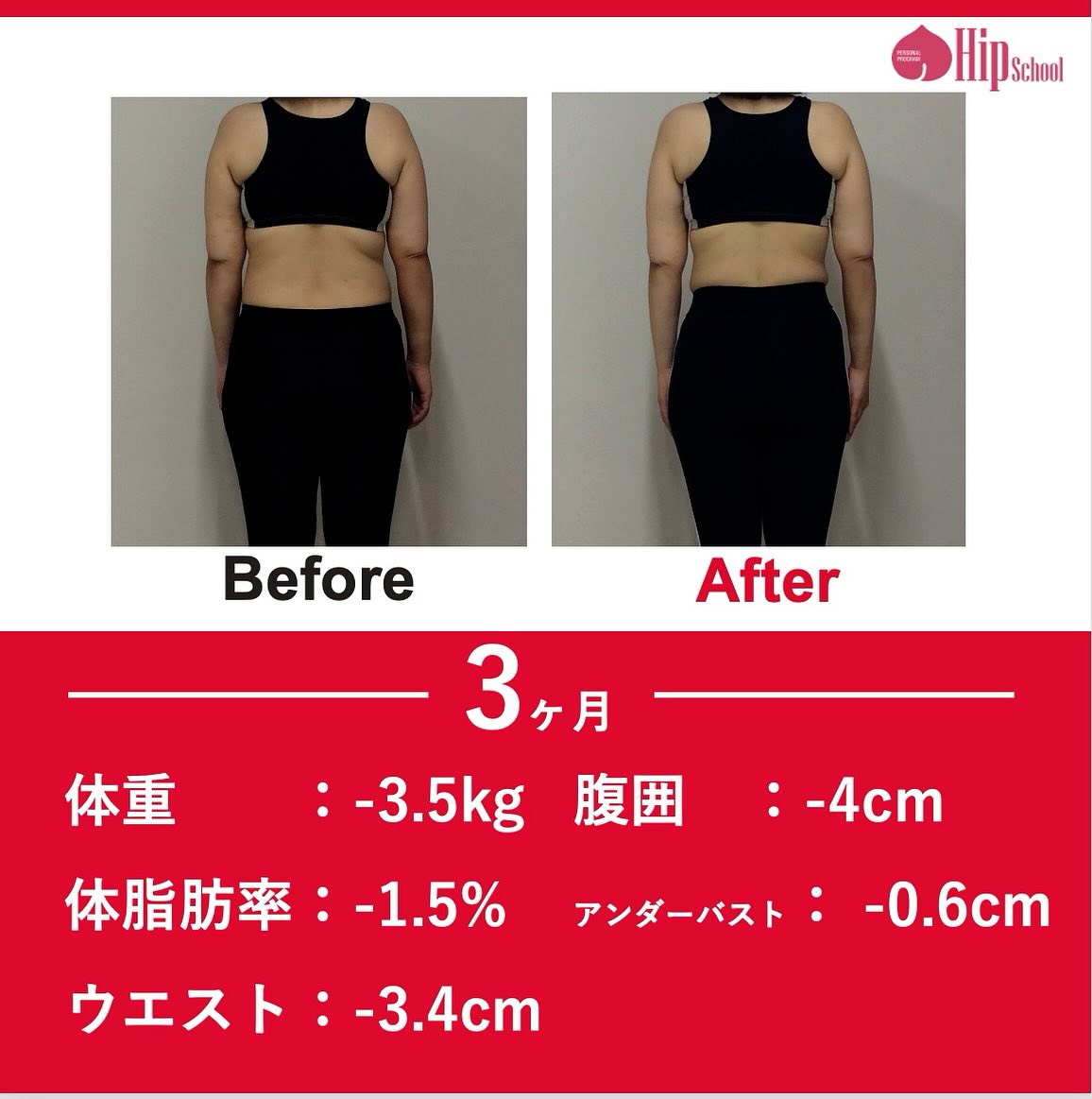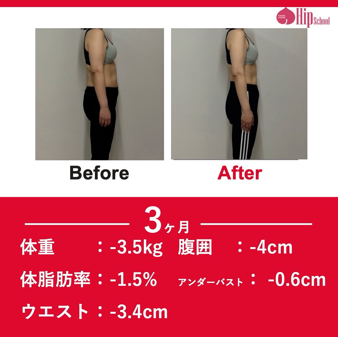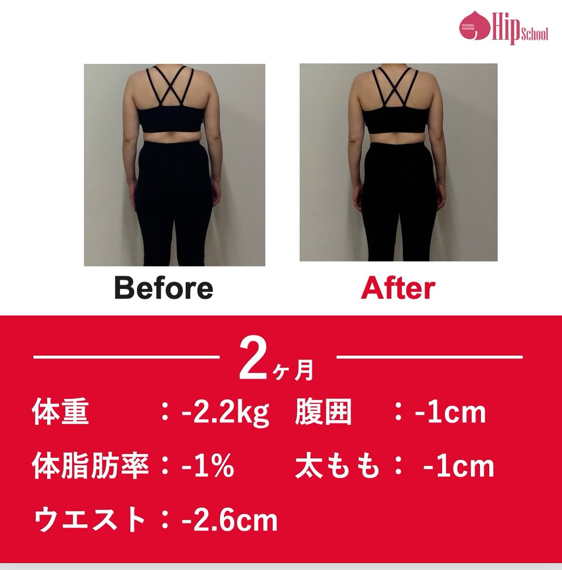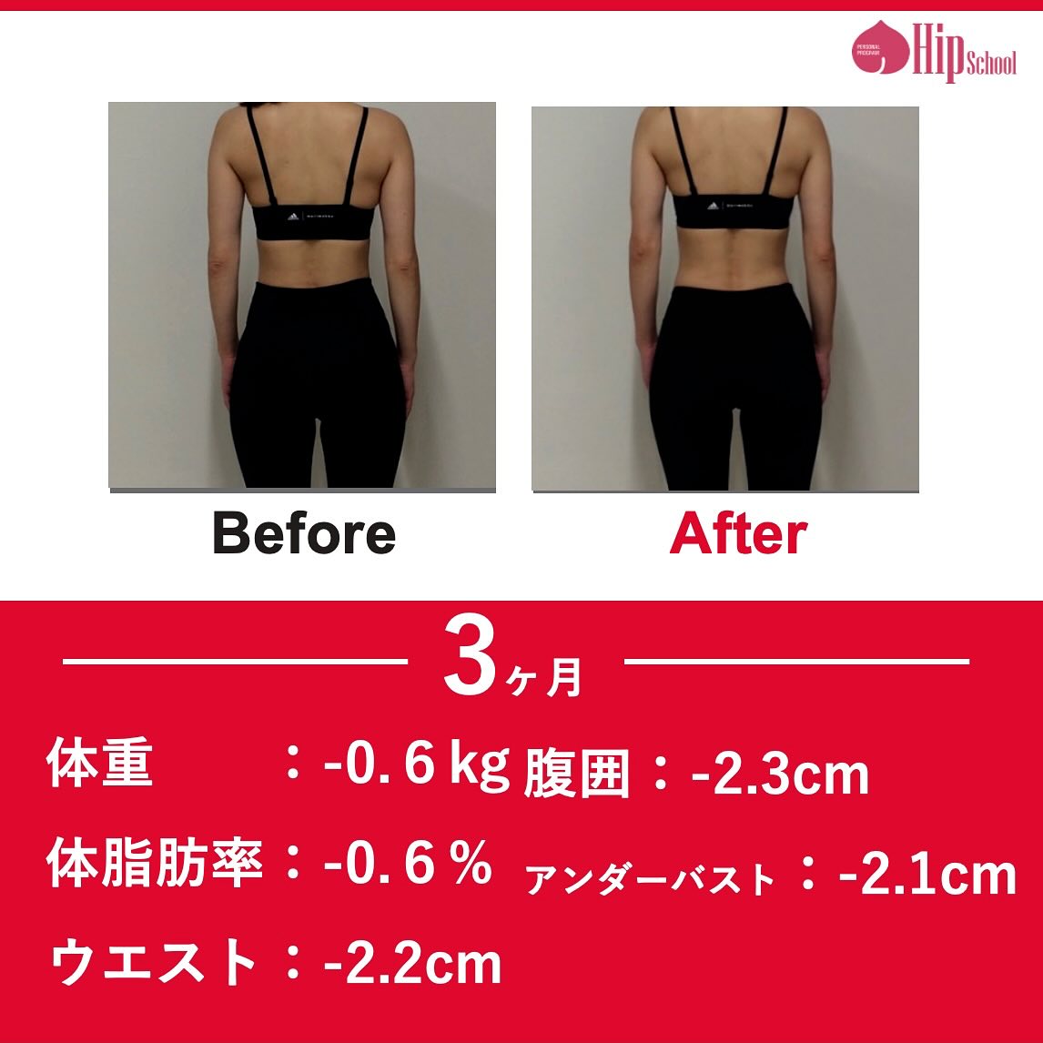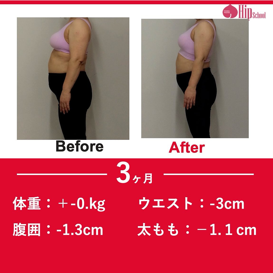 ヒップスクールに通われた生徒様のビフォーアフター。数値だけではない、姿勢やシルエットの劇的な変化をご覧ください。