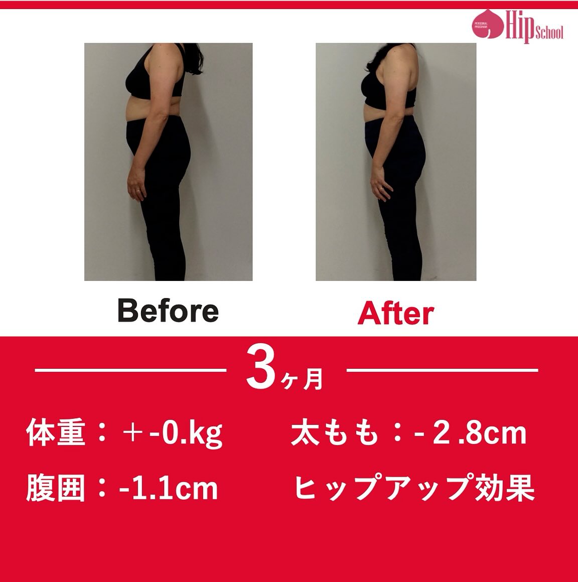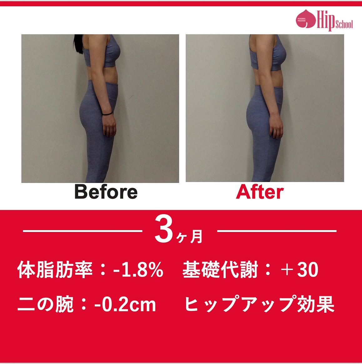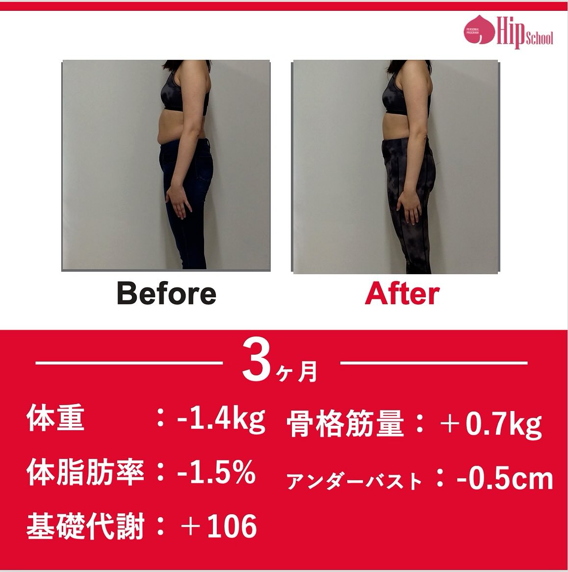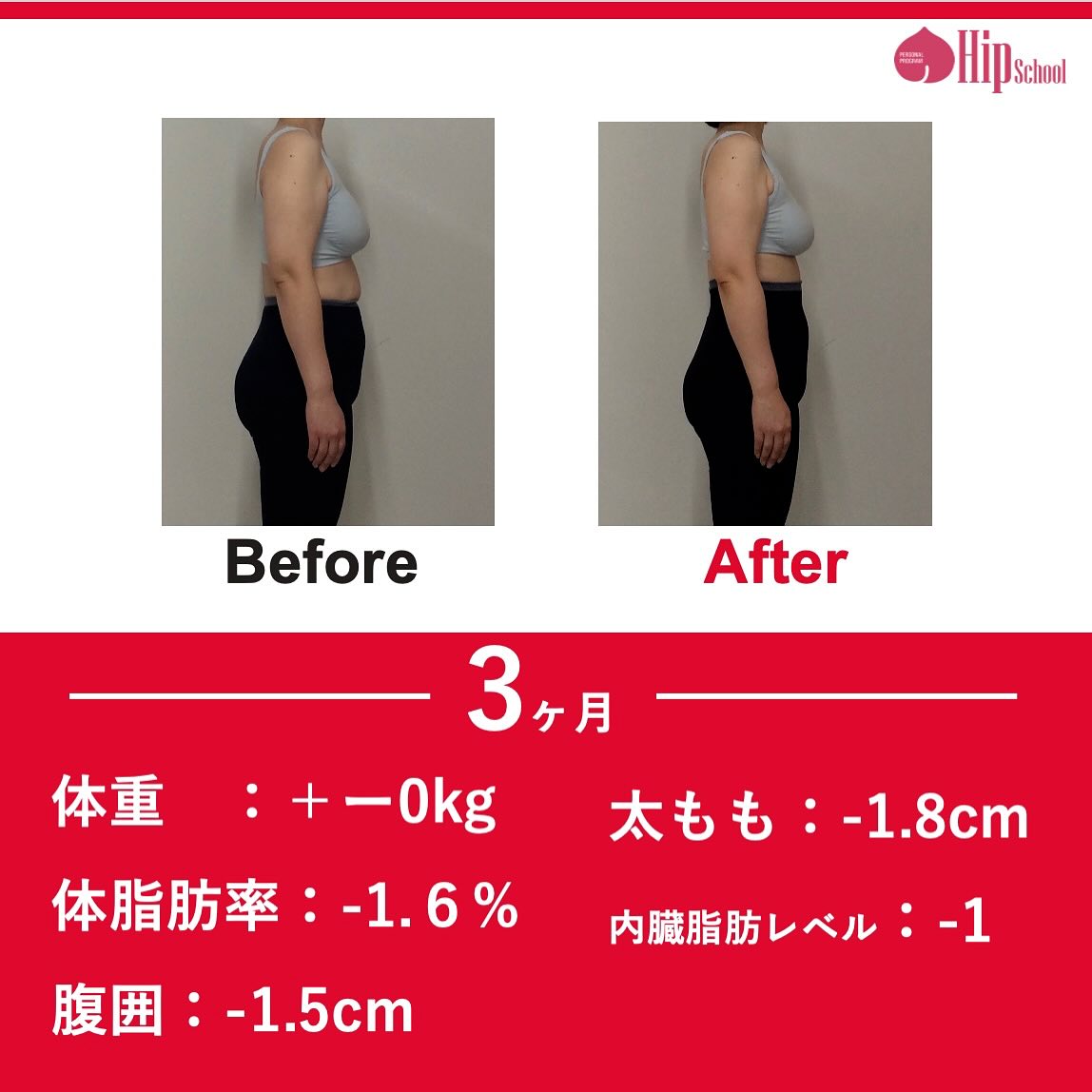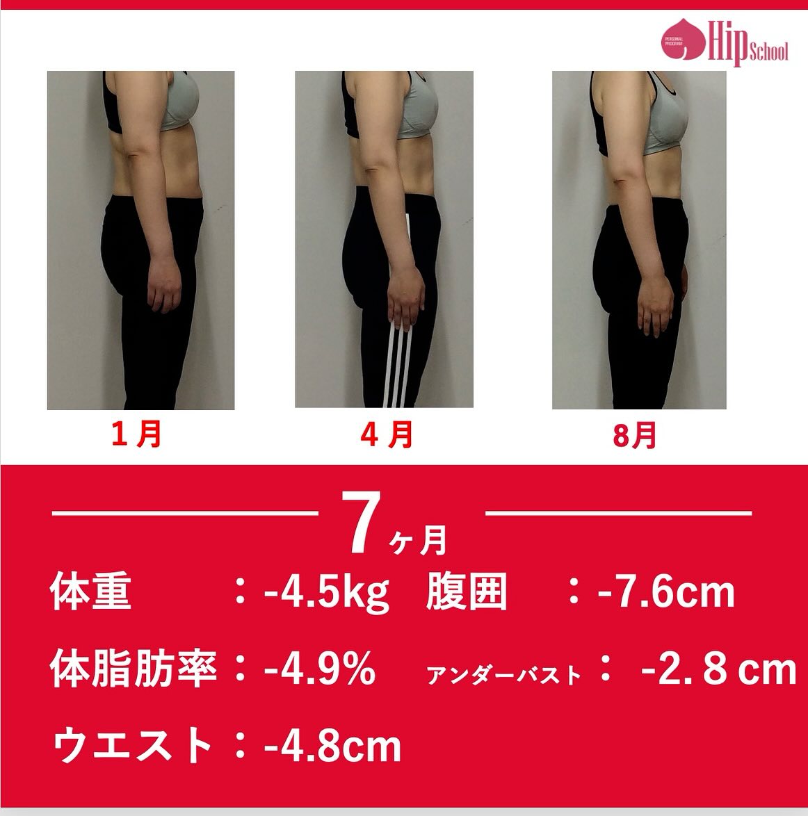 ヒップスクールに通われた生徒様のビフォーアフター。数値だけではない、姿勢やシルエットの劇的な変化をご覧ください。